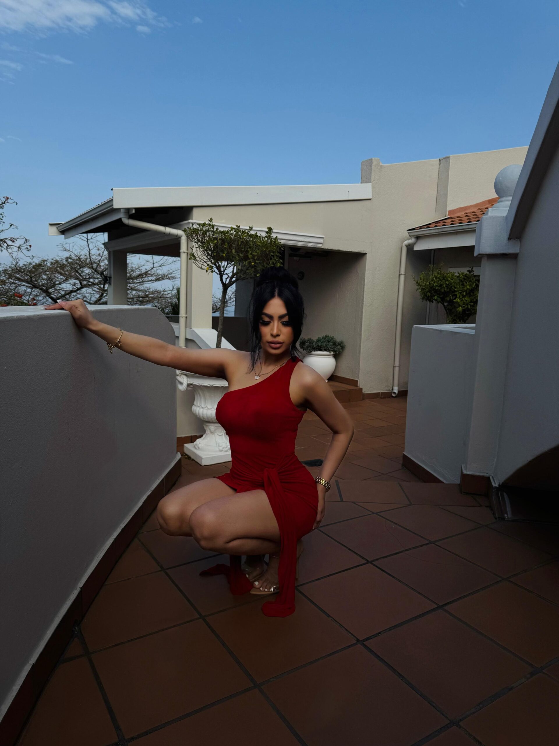 Deep, sultry, and endlessly elegant, this burgundy half-neck dress wraps you in sophistication. The high neckline adds a touch of refinement, balanced by its curve-enhancing silhouette. Whether it’s a formal dinner or a night of champagne and city lights, this piece whispers luxury without needing to shout.